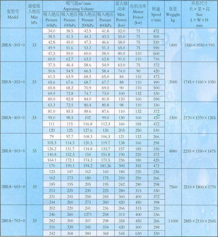 2BEA水環式真空泵技術參數: