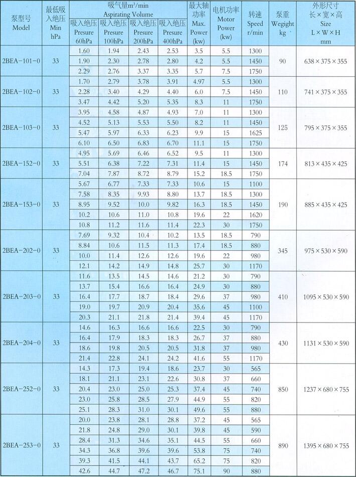 2BEA系列水環真空泵及壓縮機是我廠在長期科研的基礎上,結合國際先進技術,不斷實踐驗證研制開發的高效節能的新型產品。通常用于抽吸不含固體顆粒、不溶于水、無腐蝕性的氣體,以便在密封的容器中形成真空和壓力。通過結構材料的改變,亦可用于抽吸腐蝕性氣體,腐蝕性液體。可廣泛用于造紙、化工、石化、輕工、制藥、食品、冶金、建材、電器、洗煤、選礦、化肥等行業。 2BEA系列水環真空泵采用單級作用的結構形式,具有結構簡單、維修方便、高效節能、運行可靠等優點,對關鍵部件泵軸、葉輪、分配板等優化了設計,無論是球鐵葉輪還是沖壓成形的焊結葉輪均經過良好的熱處理,并在過盈熱裝前后,分別進行平衡及動平衡校驗,運轉更加平穩、抗沖擊性更加優良適應了排水量大、載荷沖擊波動等惡劣工況。 2BEA系列水環真空泵、自帶氣水分離器;設有多位置進排氣口,泵蓋上增設了排氣閥檢修窗蓋,裝配和維修更加方便.